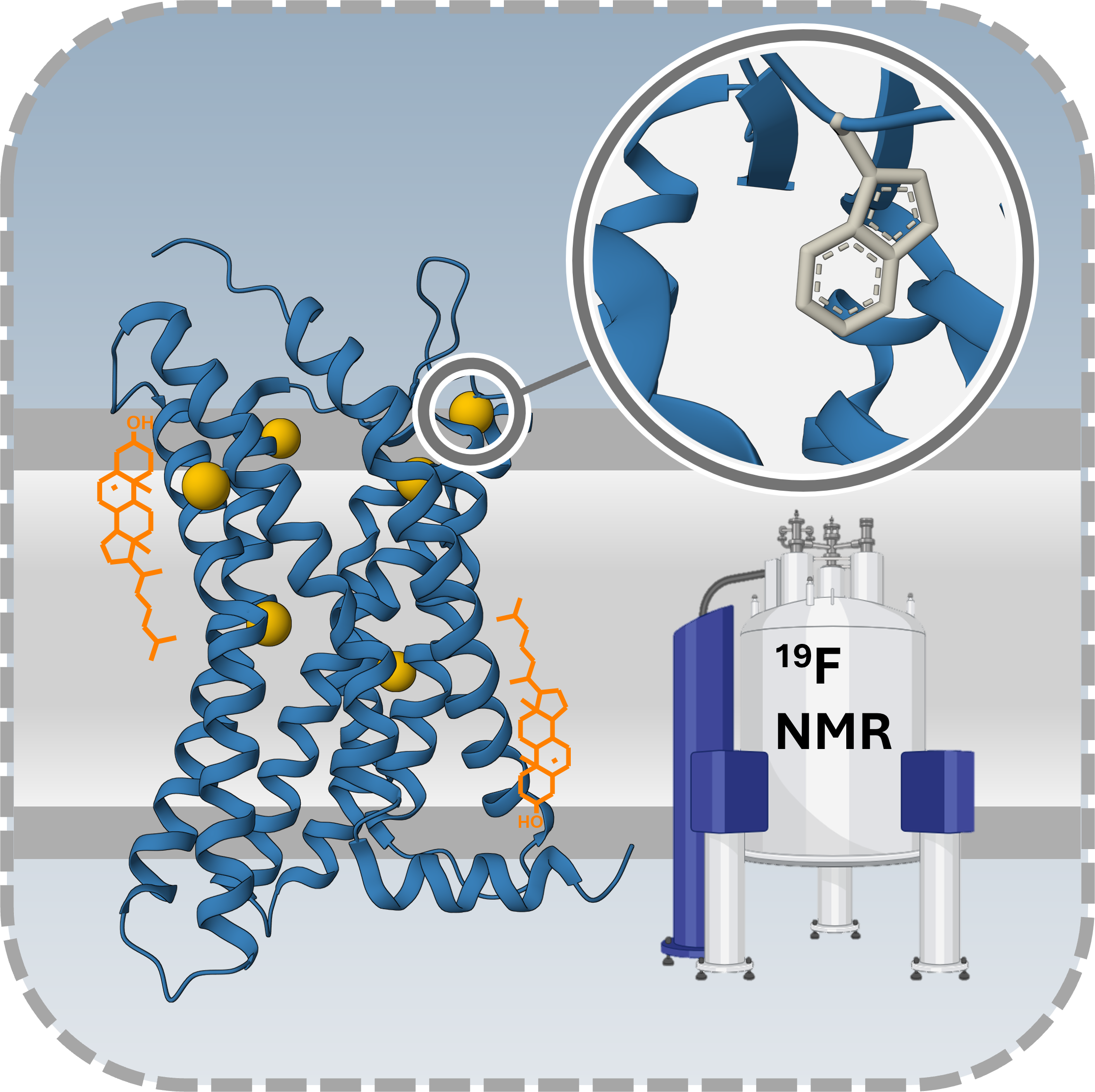 Nuclear magnetic resonance (NMR) is a technology that allows us to quantify the different activation states that GPCRs adopt and the transitions between them, as well as identify atomic interactions through space. As such, it is the ideal method with which to address this issue. Nevertheless, the features of GPCRs and NMR mean that we must utilise non-traditional methods to achieve this. ¹⁹F NMR has the sensitivity to enable us to investigate the direct and indirect effects of cholesterol on chemokine receptors.